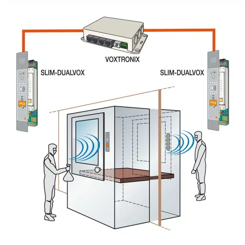 Il sistema VOXTRONIX è la soluzione ideale per l’intercomunicazione in passbox e locali sterili. Con amplificazione a microprocessore, configurazione modulare ed espandibile, e installazione istantanea Click&Go, assicura comunicazioni con ascolto e risposta alternata.